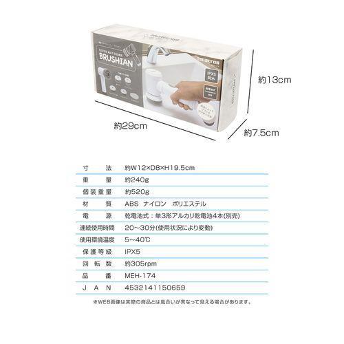 マクロス MACROS 電動マルチクリーナーブラシアン IPX5防水 電池式 コードレス ホワイト MEH174
