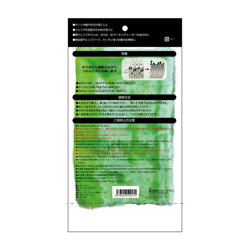 トレードワン 水だけ万能ふきん グリーン 30735ミズダケバンノウフキンGR