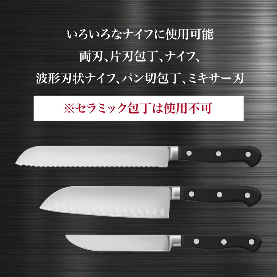 ●いろいろなナイフに使用できます。(両刃、片刃包丁、ナイフ、波形刃状ナイフ、パン切包丁、ミキサー刃)