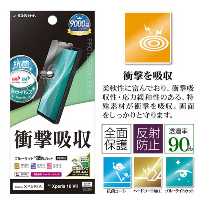 ラスタバナナ Xperia 10 VII用衝撃吸収フルスペック 抗菌・抗ウィルス 反射防止フィルム クリア VY5158XP107