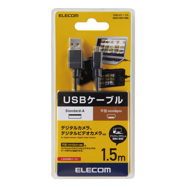 エレコム ELECOM カメラ接続用USBケーブル(平型mini8pinタイプ) 1.5m ブラック DGW-F8UF15BK