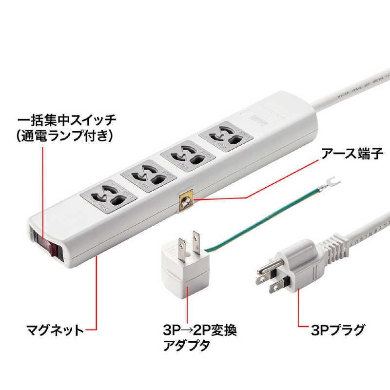 サンワサプライ 電源タップ(3P・4個口・3m) ホワイト TAP-34MG-3