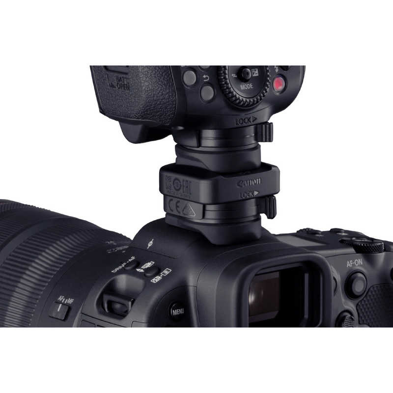 ※EOS R50、EOS R50 V、PowerShot V1で防塵防滴アダプターのないアクセサリーシュー搭載のアクセサリーを使用するためにはAD-E1が必要となります。