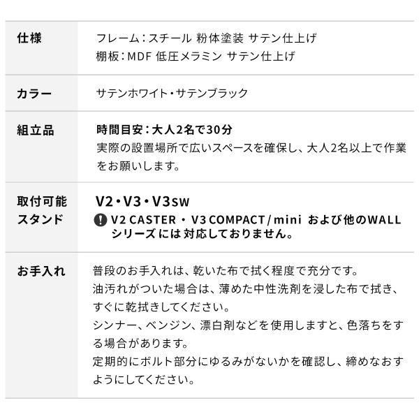 ・WALLテレビスタンドV2・V3と組み合わせて使用できる専用ラックです。天板にスタンドの支柱サイズに合わせた切込みがあるのでより一体化してお使い頂けます。