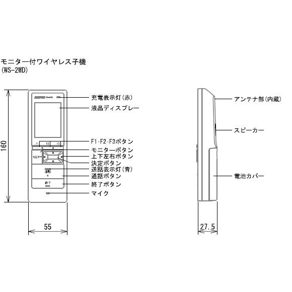 ■モニター付ワイヤレス子機:W55×H165×D29(mm)