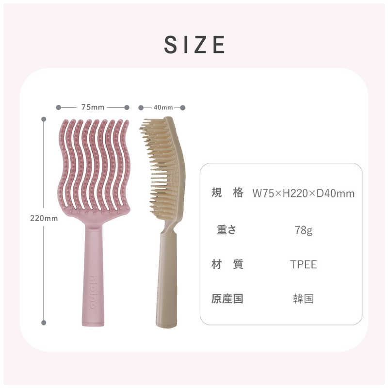 シャンプー前のブラッシングで埃を取り除いたり、トリートメントを髪全体に馴染ませるなど入浴中のヘアケアにも使用可能