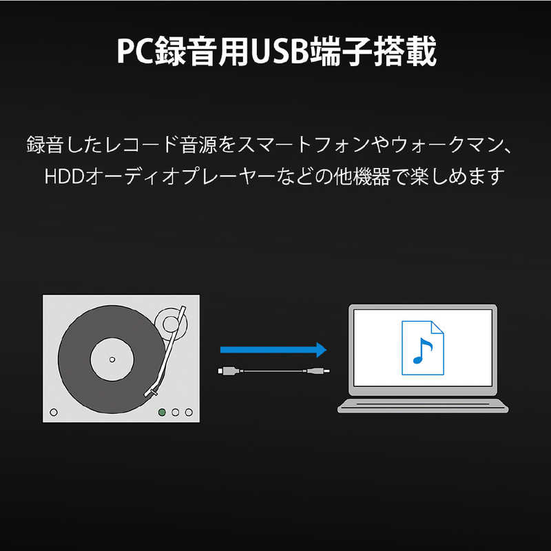 ●付属品 取扱説明書・保証書、ターンテーブル、ターンテーブル用マット(スリップマット)、ダストカバー、ダストカバーヒンジ×2、ACアダプター、45回転用アダプター、音声ケーブル (1.3m)