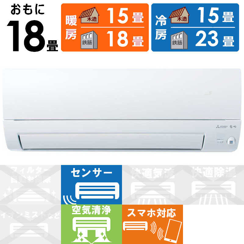 三菱 MITSUBISHI エアコン 18畳 工事込み 工事3年保証 三菱電機 霧ヶ峰 Sシリーズ (冷房:15~23畳/暖房:15~18畳) 2026年モデル ピュアホワイト MSZ-S5626S-W
