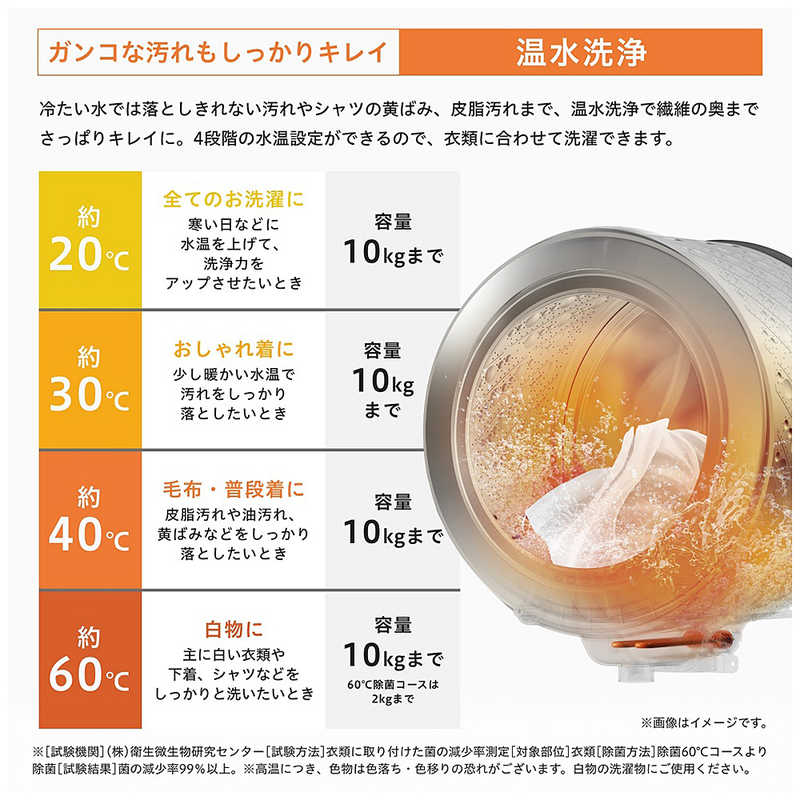 ●標準使用水量:洗濯時/72L、洗濯~乾燥時/101L