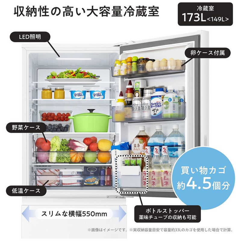 ・冷蔵室173L、冷凍室84Lの使いやすさにこだわった収納力。