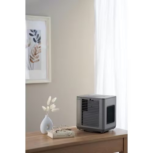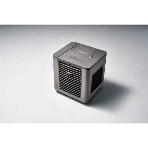 ●省エネ小型クーラー 驚くほど軽量コンパクトな小さい卓上サイズ。持ち運びに便利な「取っ手」付き。専用リモコンも搭載!寝ながら操作できるので便利。