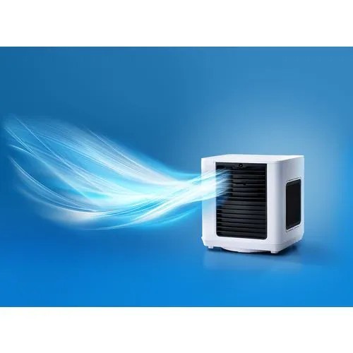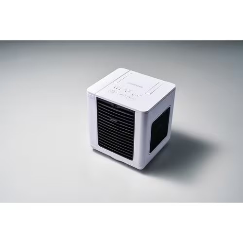 ●省エネ小型クーラー 驚くほど軽量コンパクトな小さい卓上サイズ。持ち運びに便利な「取っ手」付き。専用リモコンも搭載!寝ながら操作できるので便利。