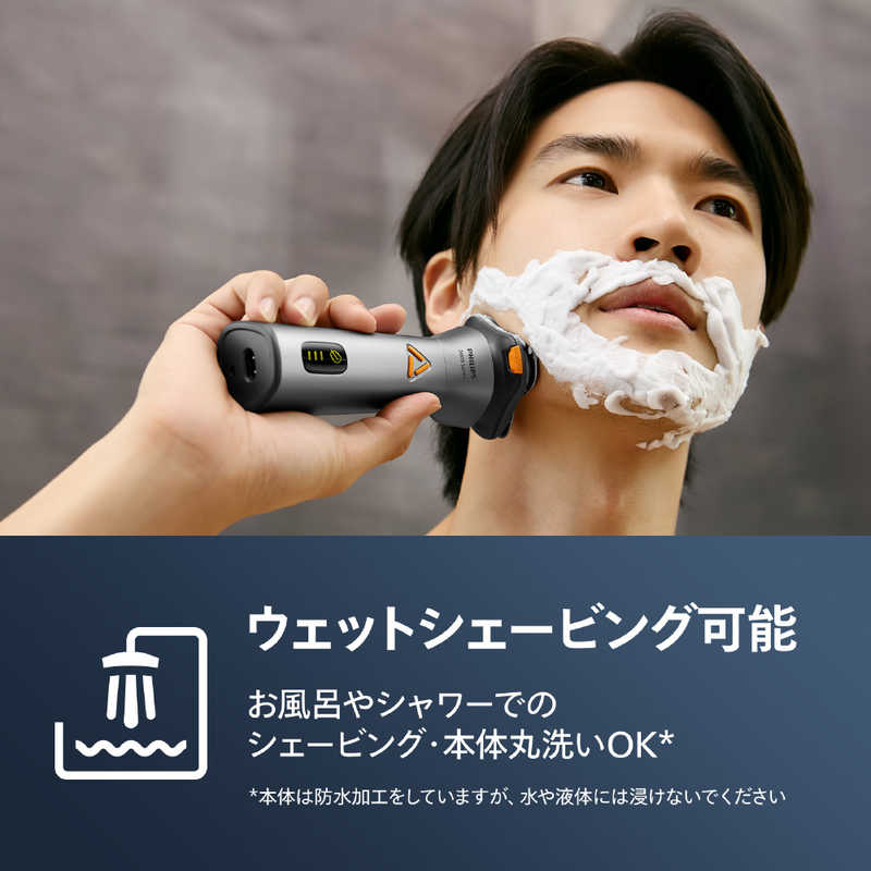 お風呂やシャワーでのシェービング、そしてシェービングフォームやシェービングジェルを使ったウェットシェービングが可能です。剃った部分を実感しながら、なめらかなシェービングを。