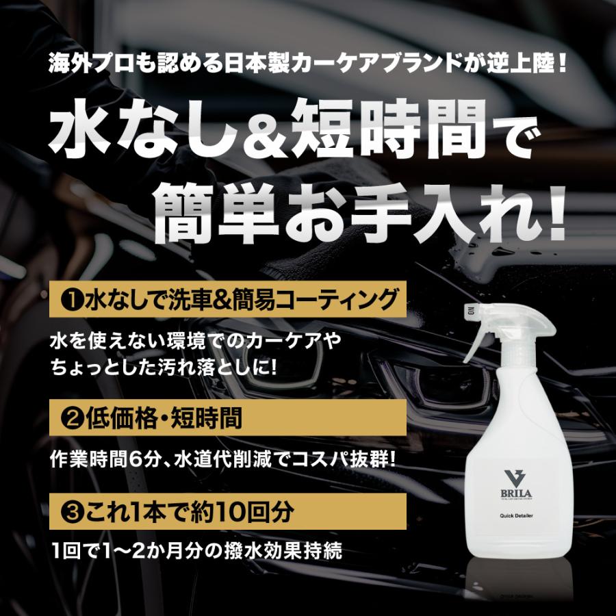 水を使用せずボディが汚れた状態のままスプレー噴霧しクロスで液剤を伸ばししっかり拭き上げます。
