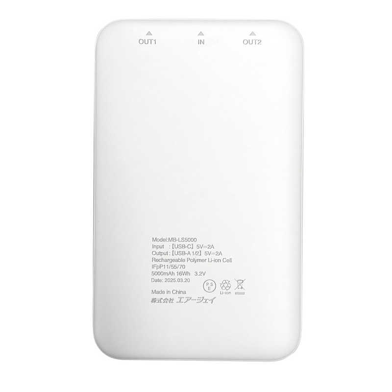 エアージェイ AIR-J リン酸鉄モバイルバッテリー5000mAh WH MBLS5000WH