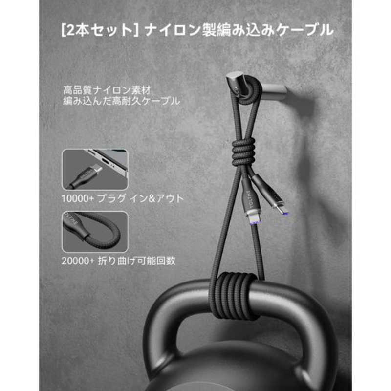VOLTME 5A・100W データ転送/急速充電 高耐久編み込み ナイロンケーブル USB-C&USB-C 1.8m(ブラック) C2170