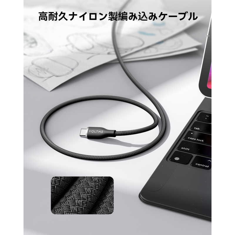 ●VOLTME Powerlink Rugg編み込みナイロン製、 USB C to USB C 60W 1M、 USB2.0 Type C 充電ケーブル。