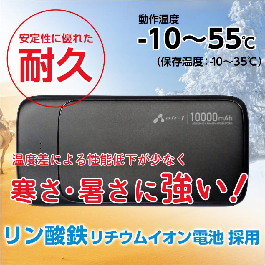 エアージェイ air-j リン酸鉄モバイルバッテリー10000mAh BK MBLS10000MK2BK