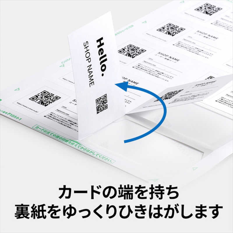 印刷後にセパレータ(裏紙)をはがすことで、名刺サイズに切り離せるクリアエッジタイプです。