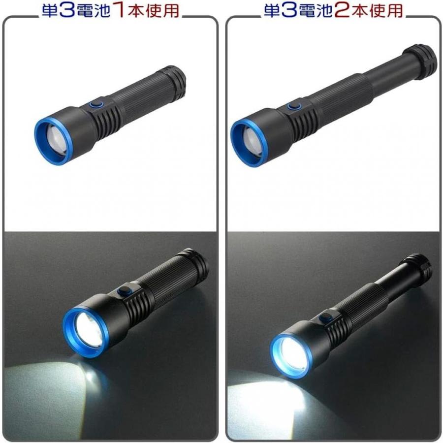 ※乾電池1本で使用する場合、必ず伸び縮み部を縮め、乾電池サイズに合わせてご使用ください。本体を伸ばした状態のまま乾電池1本で使用した場合、ライトは点灯しません。