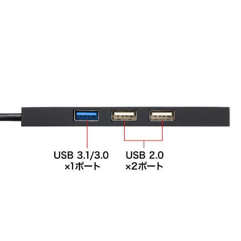 ●コネクタ:USB3.1 Gen1(USB3.0) Aコネクタ メス×1(ダウンストリーム)、USB 2.0 Aコネクタ メス×2(ダウンストリーム)、Type-Cコネクタ オス×1(アップストリーム)