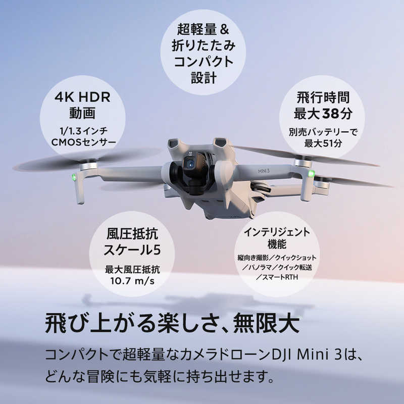 **** DJI Mini 3は、使用前に、DJI Flyアプリを使ってアクティベーションする必要があります。
