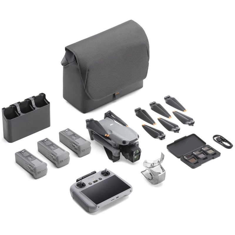 ●700ニトの明るさを実現する5.5インチ1080pディスプレイを搭載したDJI RC 2、NDフィルターセット、追加バッテリー2個、バッテリー充電ハブ、ショルダーバッグなどが付属しています。