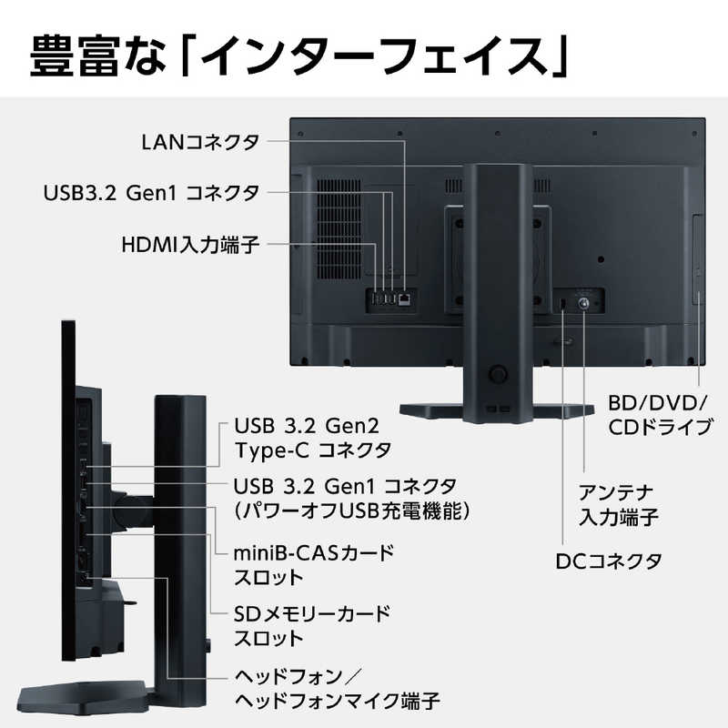 [TV]地上デジタル・BS・110度CSデジタル放送アンテナ入力端子×1、miniB-CASカードスロット×1