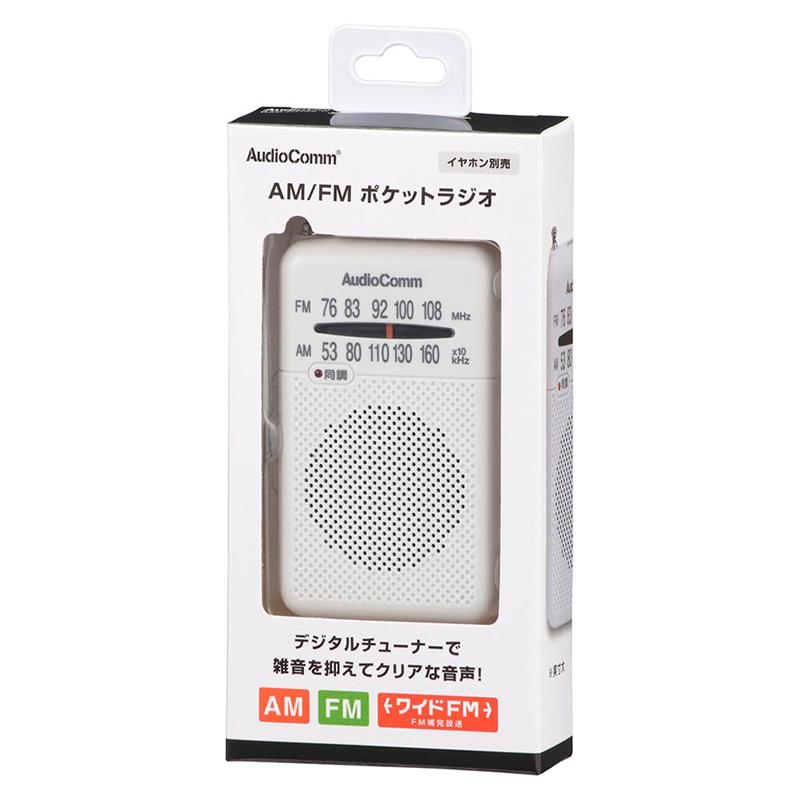オーム電機 OHM AudioComm ポケットラジオ AM/FM/ワイドFM ホワイト RAD-P370S-W