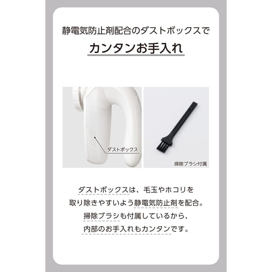 ●ダストボックスは、毛玉やホコリを取り除きやすいよう静電気防止剤を配合しています。掃除ブラシも付属しているから、内部のお手入れもカンタンです。