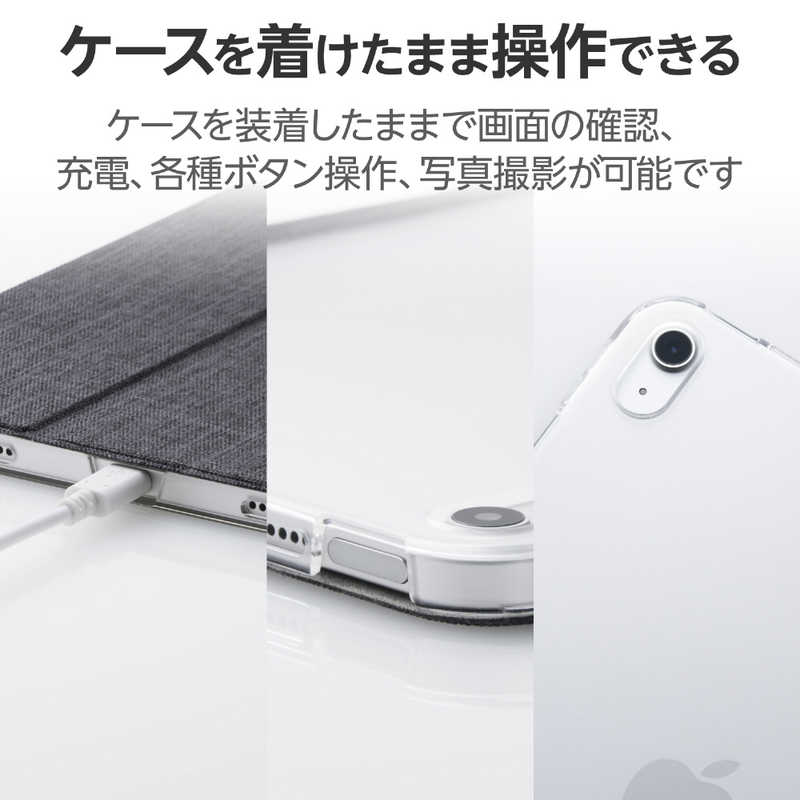 エレコム ELECOM iPad(A16) iPad 第10世代 フラップケース 背面クリア ファブリック スリープ対応 TB-A24RWVCBK