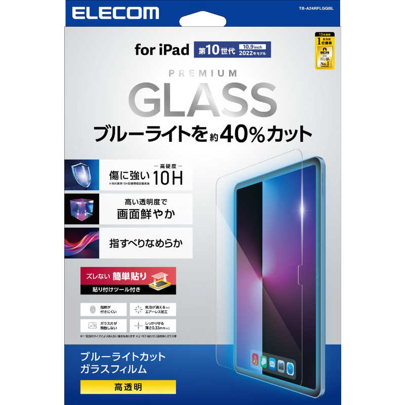 エレコム ELECOM iPad第10世代 用 ガラスフィルム 高透明 ブルーライトカット 貼り付けツール付 強化ガラス 表面硬度10H TB-A24RFLGGBL