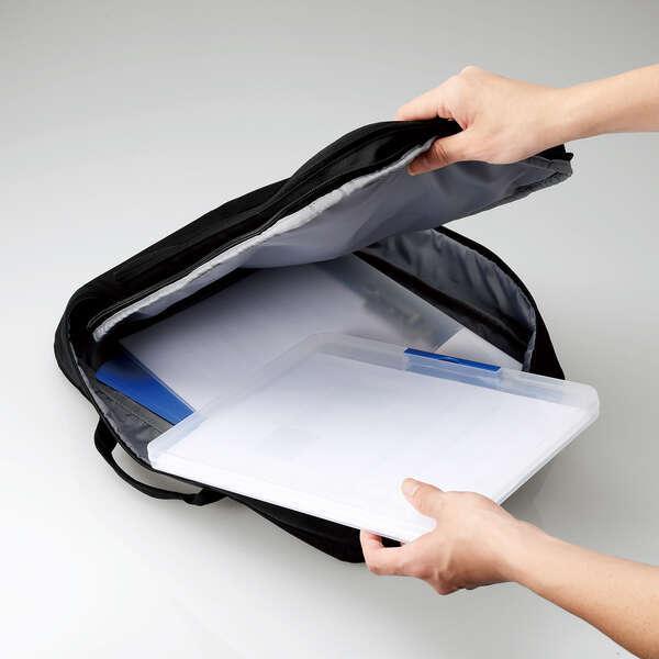 ●前面ポケットには小物、メインポケットには着替えや書類などを収納できます。