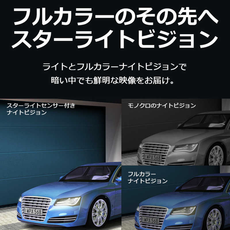 ●スターライトカラーナイトビジョン:F1.6の大口径レンズとスターライトセンサーを搭載し、暗い場所でもより明るく色鮮やかな映像を提供します。