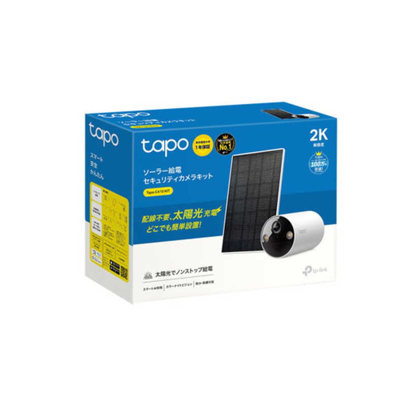 ティーピーリンク TP-Link ソーラーパネル付き バッテリーWiFiカメラ IP65 300万画素 スマートAI検知(人物) スポットライトを搭載 スマホで視聴 Micro SD対応 双方向通話 1年保証 TAPO-C410 KIT
