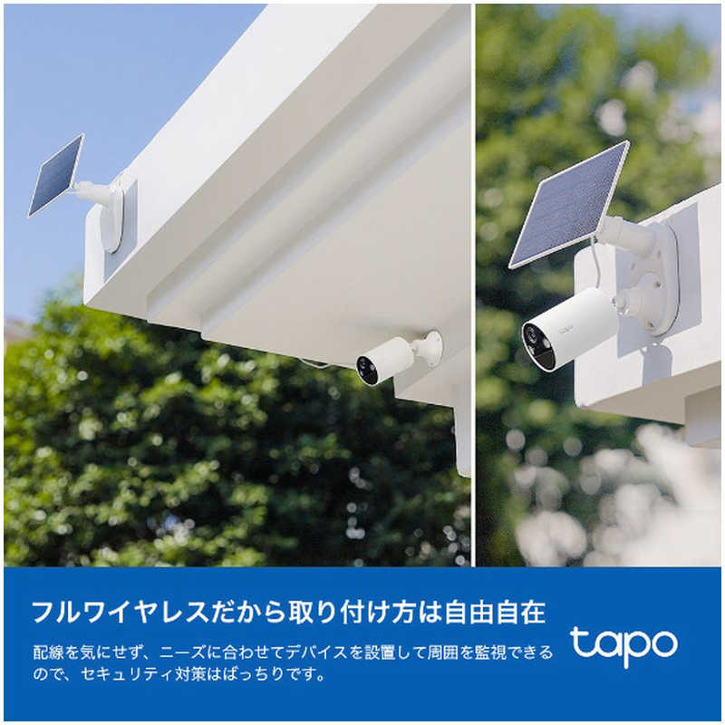 ●電源:リチウムイオンバッテリー(内蔵)、ソーラーパネル/Tapo A201