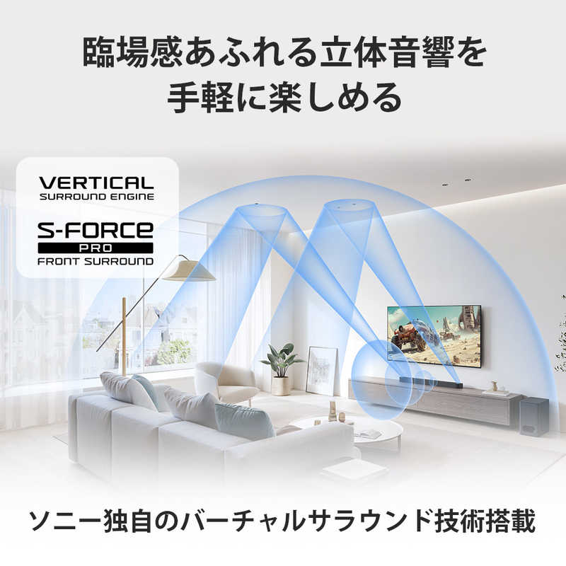 ●ソニー独自のバーチャルサラウンド技術との組み合わせにより、映画館のような迫力の低音と臨場感あふれる立体音響を実現。