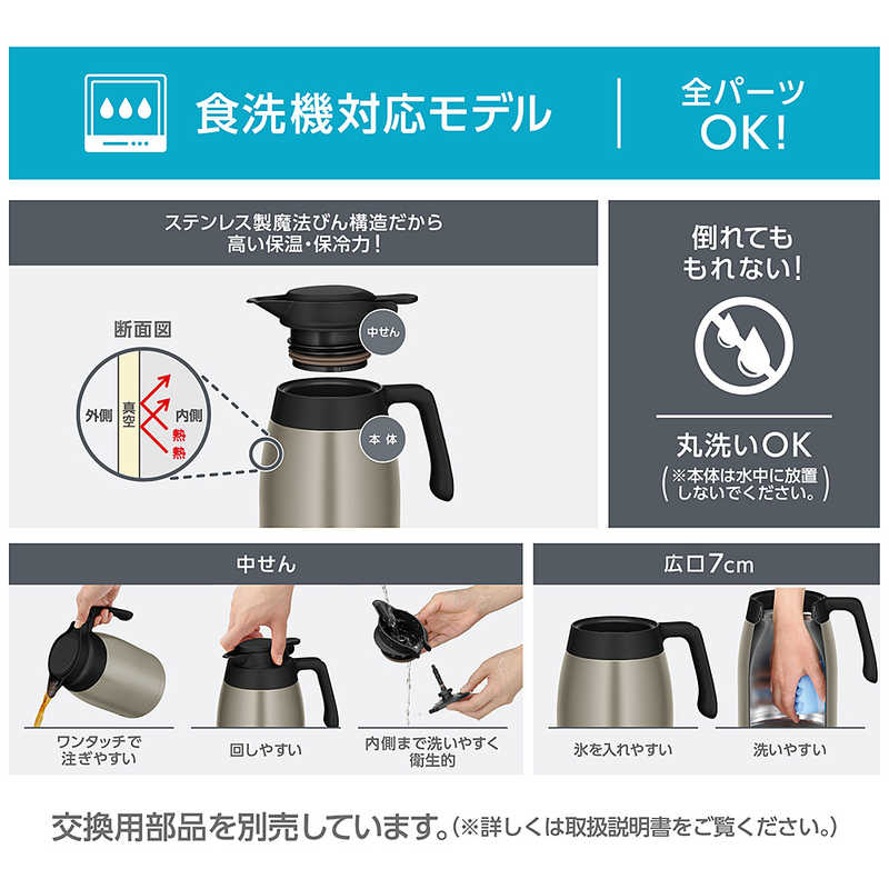 ●ステンレス製魔法びん構造で高い保温・保冷力。