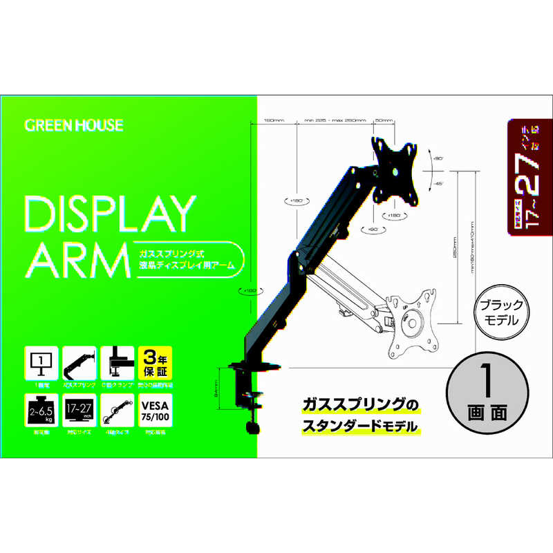 グリーンハウス 液晶ディスプレイアーム ブラック GH-AMCS01AC-BK