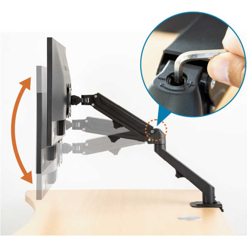 ●軽い力で画面を自在に動かせるガススプリング式アーム。