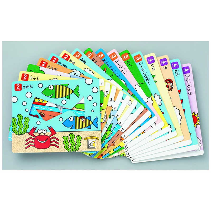 ●ガイドボードは、2ピースの形から、少しずつピースの多い形にチャレンジしていける構成になっています。試行錯誤をくり返し、夢中で遊んでいるうちに、難しいパズルもできるようになり、自然に図形感覚や考える力がついてきます。