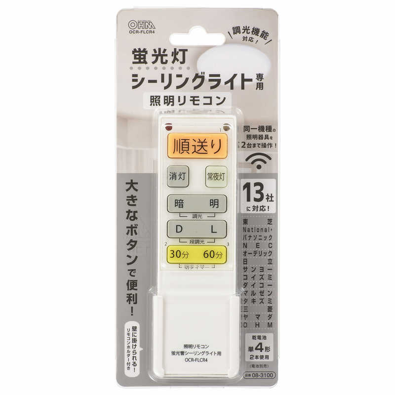 オーム電機 蛍光灯シーリングライト専用照明リモコン 国内13メーカー対応 調光機能対応 OCRFLCR4