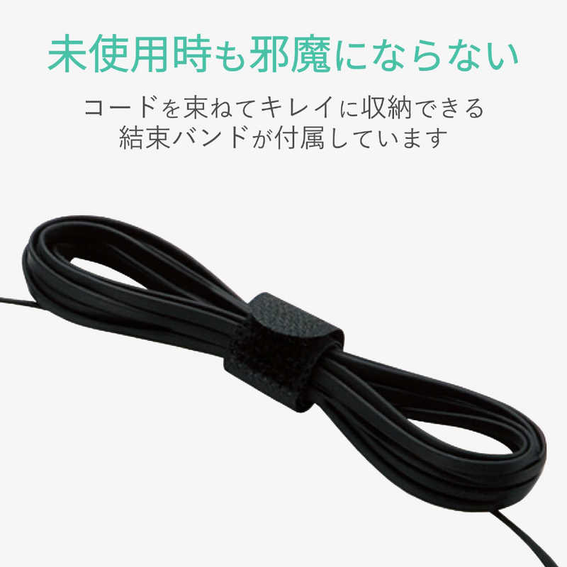 ロングコードの収納や長さの調整に便利な面ファスナー式の結束バンドが付属しています。