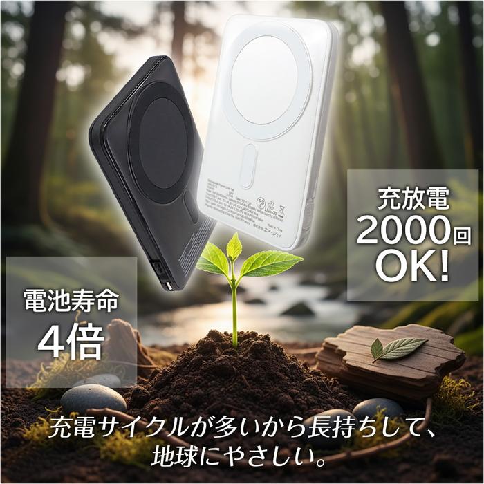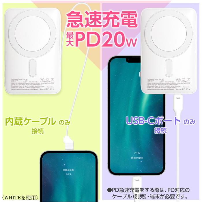 エアージェイ 準固体モバイルバッテリー5000mAh マグセーフ、スタンド、インジケーター付BK MBSS5000MGSBK