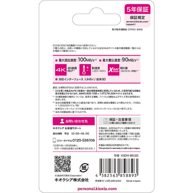 ![KIOXIA キオクシア SDXCカード EXCERIA PLUS(エクセリアプラス) [Class10 /512GB] ピンク KSDH-B512G](/html/upload/save_image/0314170941_69b517c58c4cd.jpg)