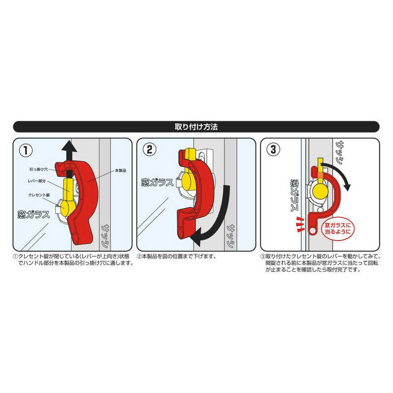 一般的な窓のカギであるクレセント錠での施錠を強化する補助ロックです。