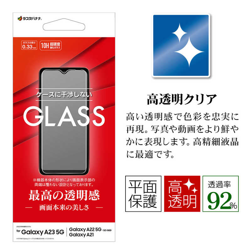ラスタバナナ Galaxy A23 5G(SC-56C/SCG18)/Galaxy A22 5G/Galaxy A21 ガラスフィルム 光沢 0.33mm GP3659GA23