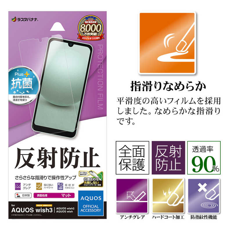 ラスタバナナ AQUOS wish3/wish2/wish 反射防止 さらさらプラスフィルム クリア TR3856AQOW3