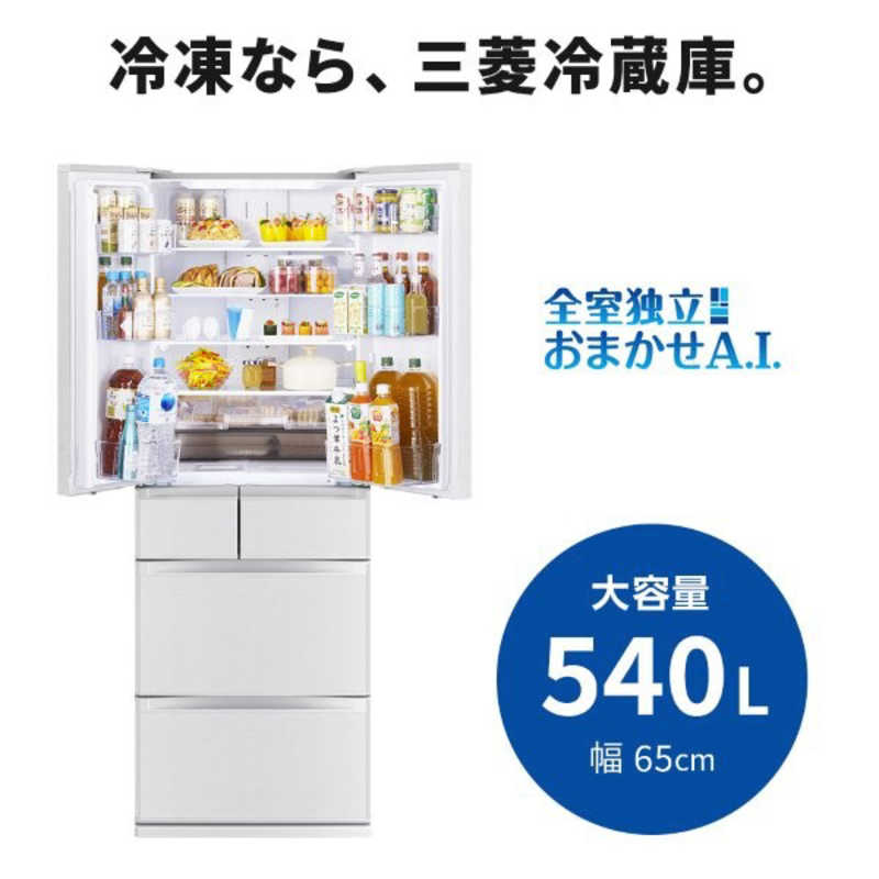 三菱 MITSUBISHI 540L 6ドアノンフロン冷蔵庫 JMシリーズ 中だけひろびろ大容量 JMシリーズ シルクウッド MR-JM54N-W(大型)
