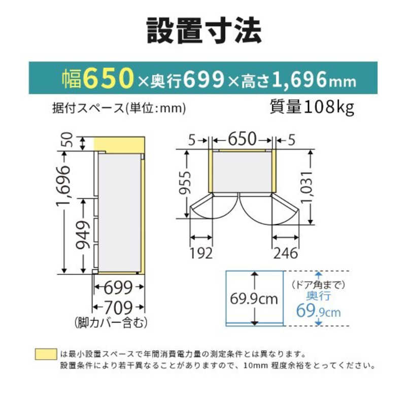 ●寸法:約W65.0×H169.6×D69.9cm